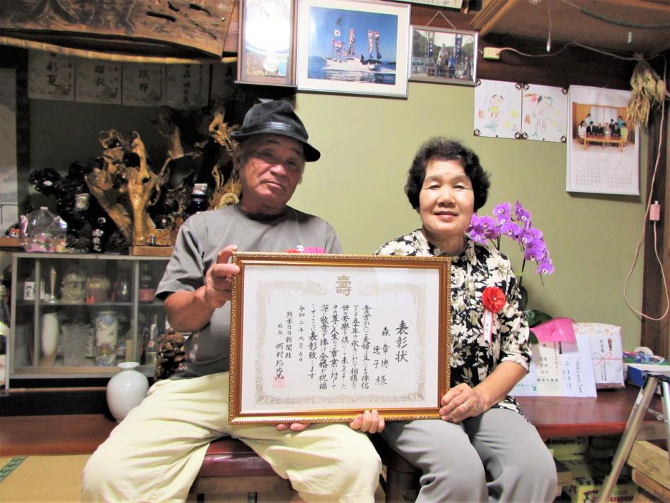 この表彰状は熊本日日新聞社から届いているもので、上皇御夫妻のご成婚を祝って始まり、今年で62回目を迎えます。今回の金婚表彰は、昭和45年にご結婚された方々です。